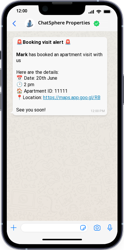 Never miss an opportunity with automated WhatsApp updates to you or your agents once a customer requests a property visit. Stay up to date with real time messaging and streamlined booking process. Learn More…