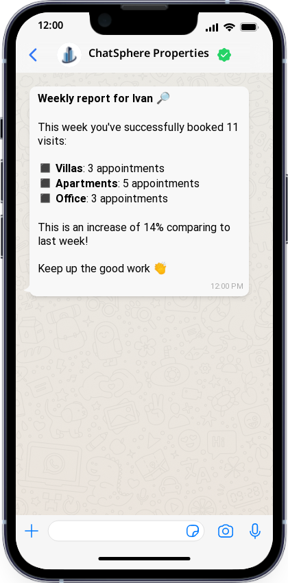 We build personalised WhatsApp Automations for your real estate business and implement it for you.